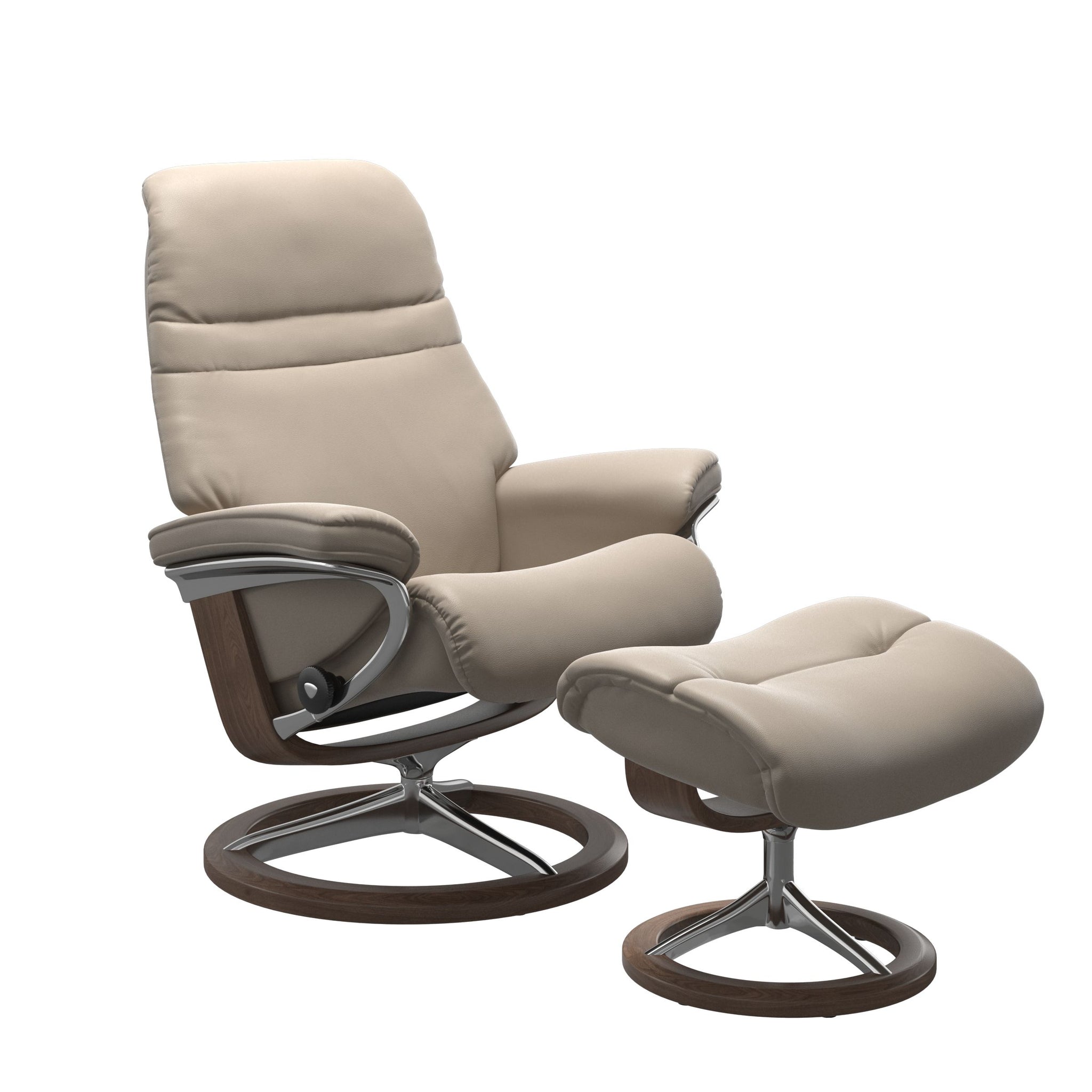 Stressless Sunrise Medium Recliner and Ottoman with Signature Base Description