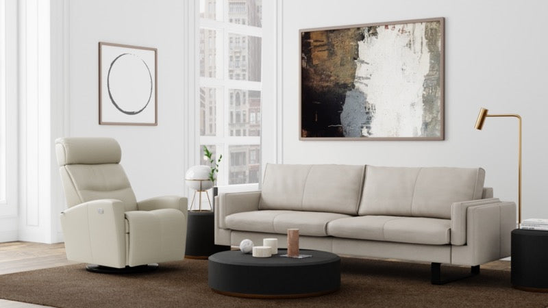 If you're looking for a recliner that combines both comfort and function, the Fjords Milan power recliner is the perfect choice for you. Designed with your relaxation in mind, this sleek swivel chair offers the distinct comfort of Fjords' classic recliners with the modern function of a motorized glider/rocker/recliner.