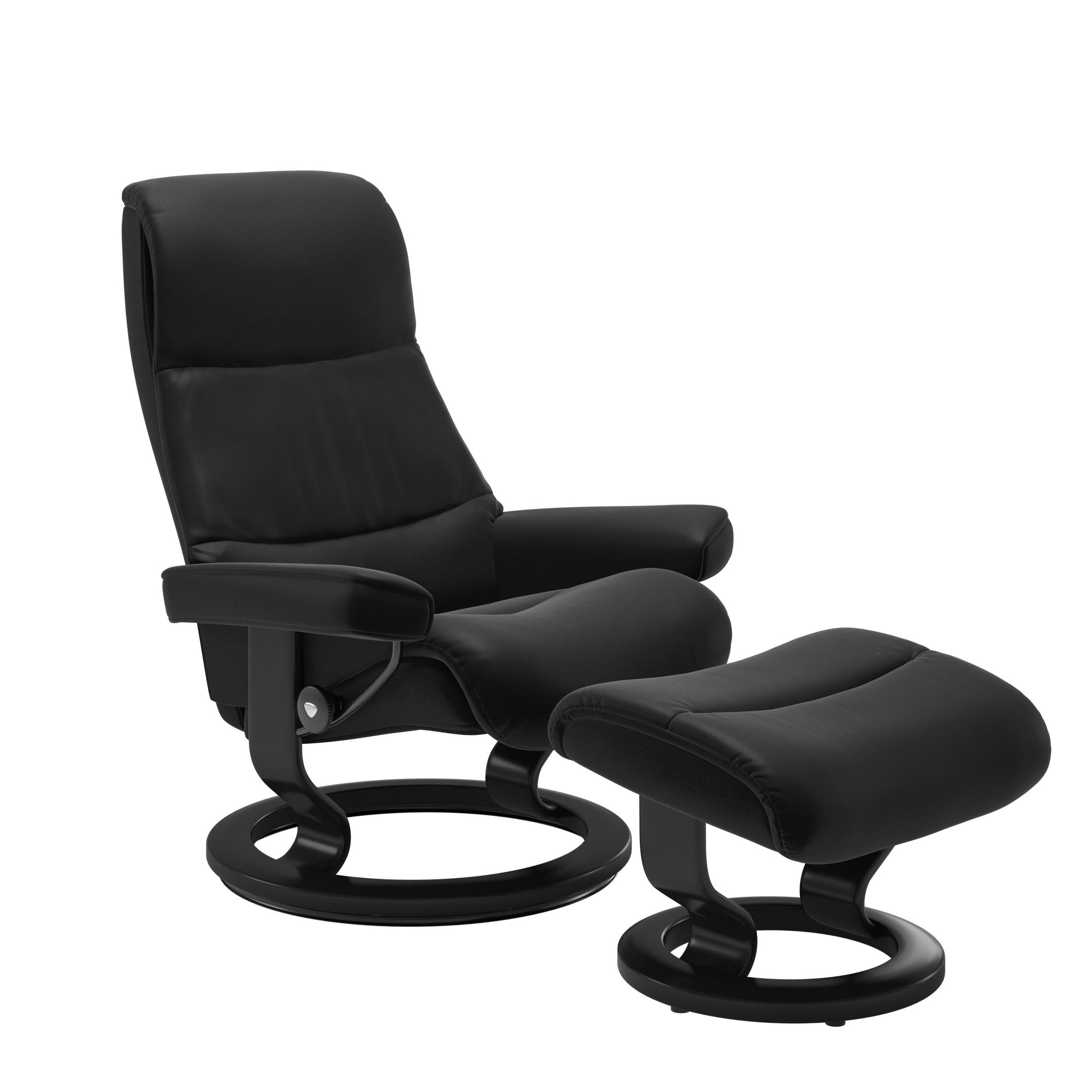 Stressless View Large Recliner and Ottoman with Classic Base Description